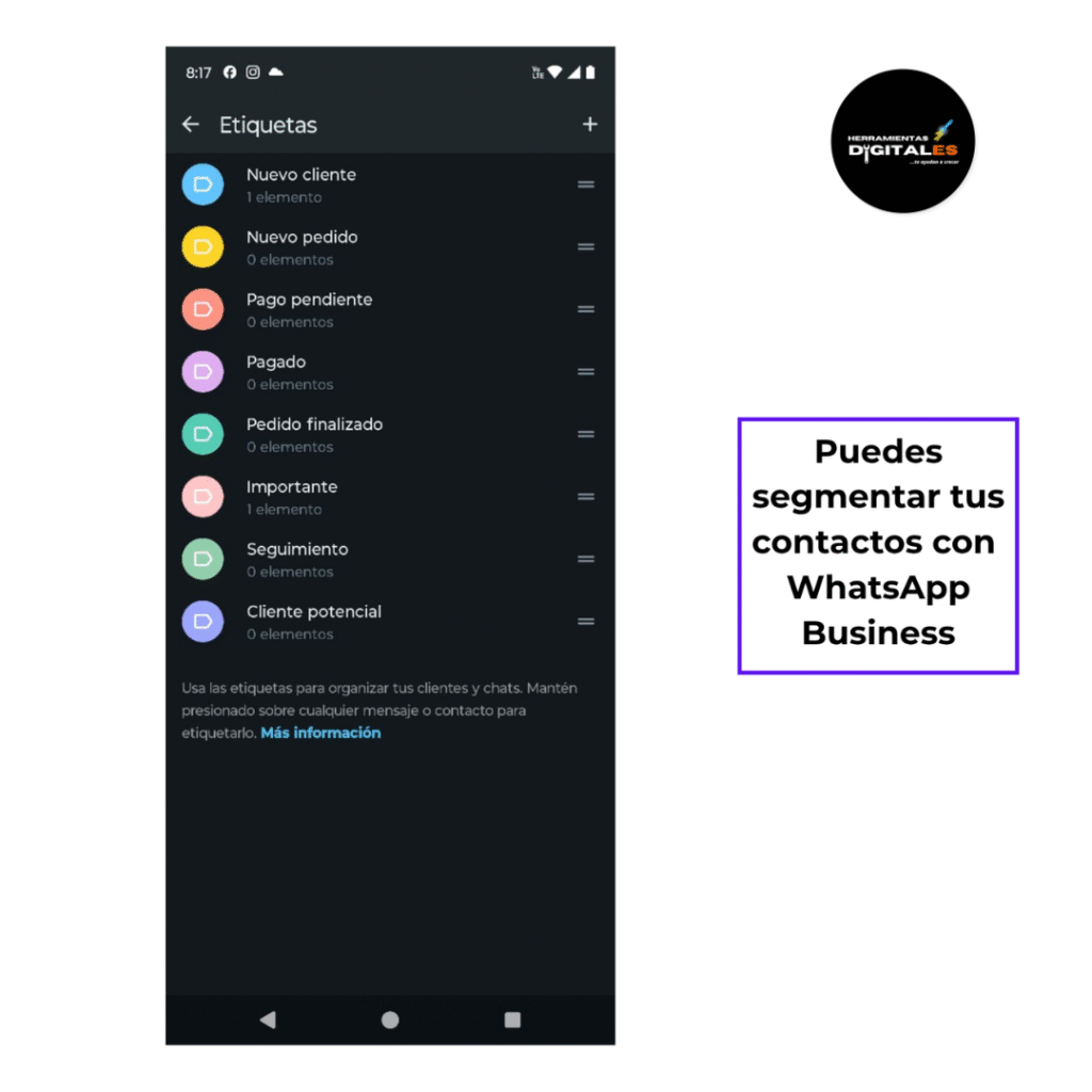 Clasifica tus conversaciones con etiquetas como: